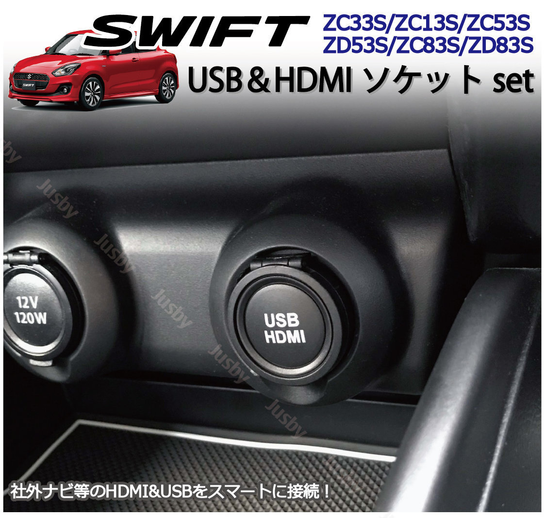 - スズキ スイフト(スポーツ)専用 HDMI&USBソケット カーナビとの接続を純正ルックに パーツ アクセサリー キット (ZC33S/ZC#3S系/ZD#3S系)