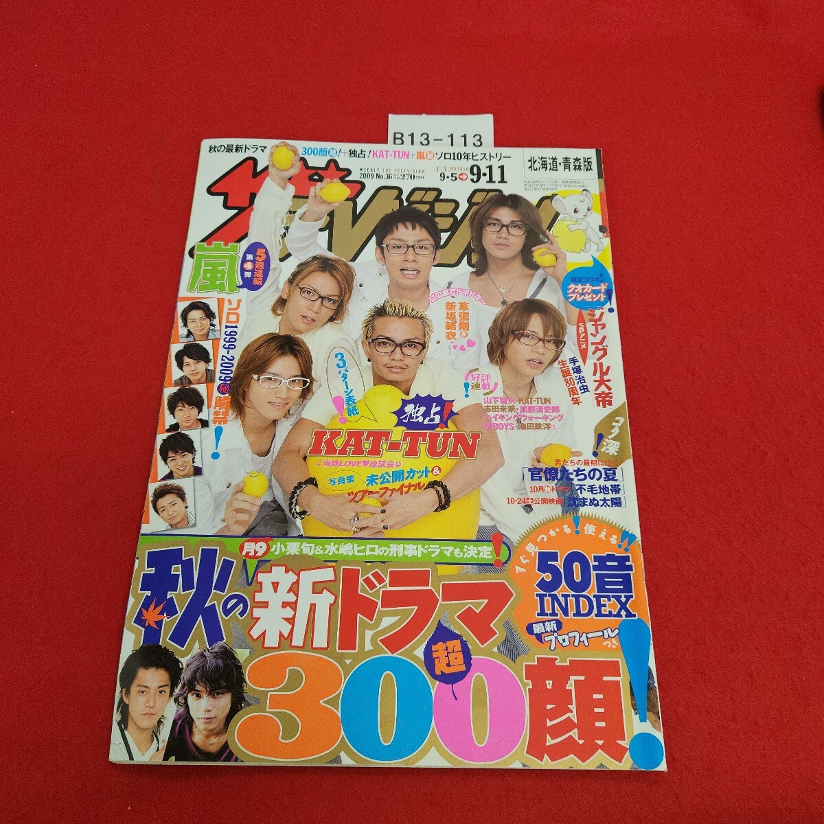 - B13-113 36 9・11号 ザテレビジョン 秋の最新ドラマ300顔超! +独占! KAT-TUN 他 2009年9月11日発行
