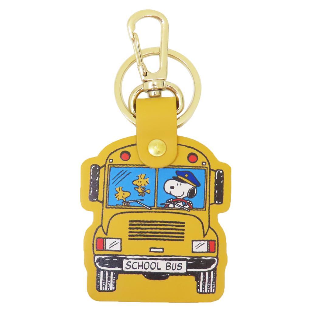 - スヌーピー キーリング レザーキーホルダー スクールバス カラー ピーナッツ 牛久保工芸社 キーホルダー キャラクター グッズ