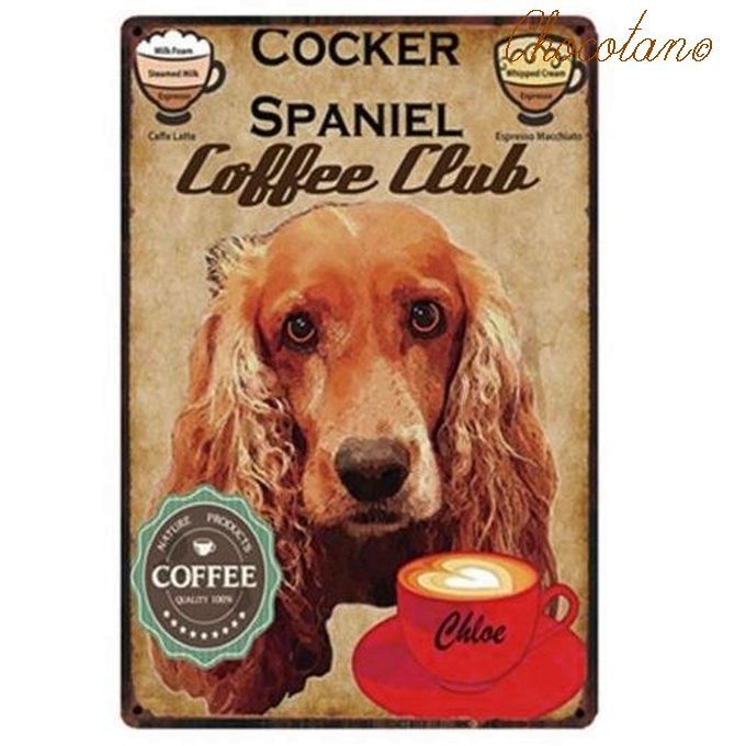 - 【送料無料】コッカー スパニエル ③ coffee メタルサインプレート メタル看板【新品】