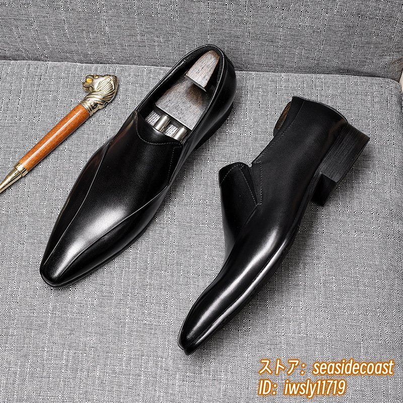 > 最高級◆定価8万 本革 ビジネスシューズ メンズ 職人手作り 手塗仕上げ 牛革 レザーシューズ 超希少 紳士靴 新品 革靴 ブラック 26.5cm