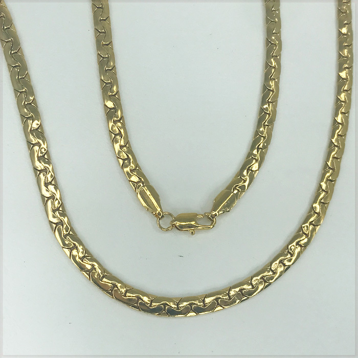 - [NECKLACE] 18K Gold Filled オーバル フラット スエッジ アズキ リンク チェーン ゴールド ネックレス 4.8x600mm (28g) 【送料無料】