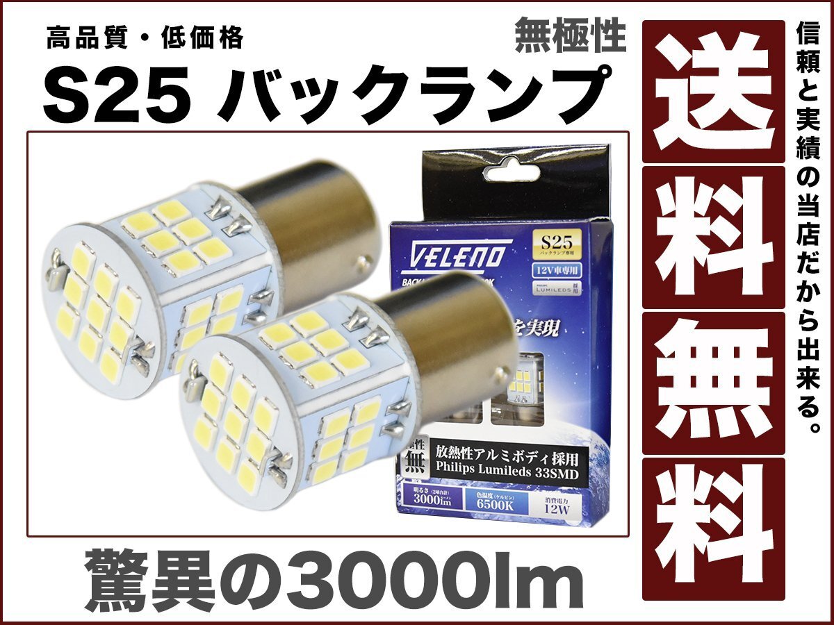 - 驚異の3000lm S25 白 LED バックランプ VELENO 美麗配光 無極性 ハイブリッド車対応 2球セット 送料無料 veleno-t16-3000lm