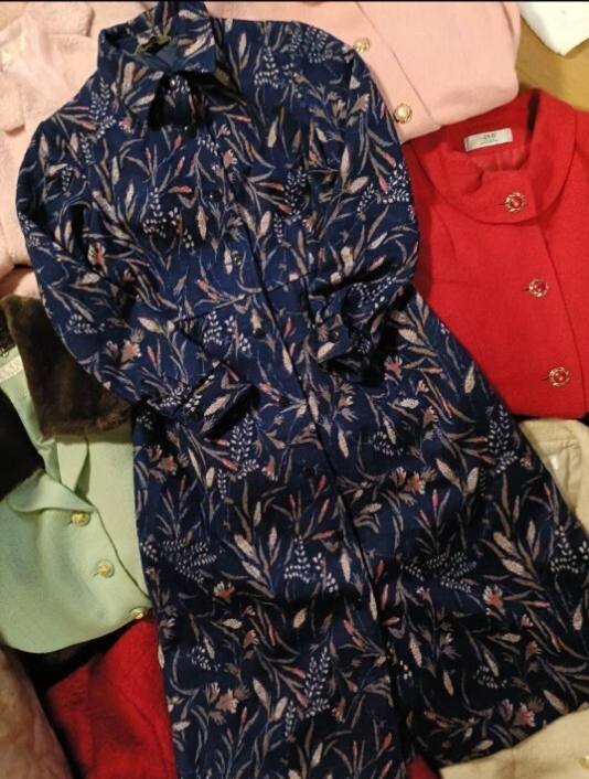 - 花柄ブルー 昭和レトロ ヴィンテージ アウター コート ワンピース 日本製