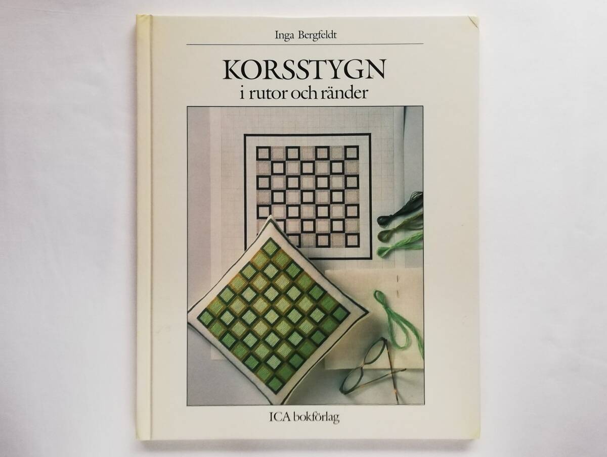 > スウェーデン語 Inga Bergfeldt / Korsstygn i rutor och rander クロスステッチ 図案集 北欧 刺繍