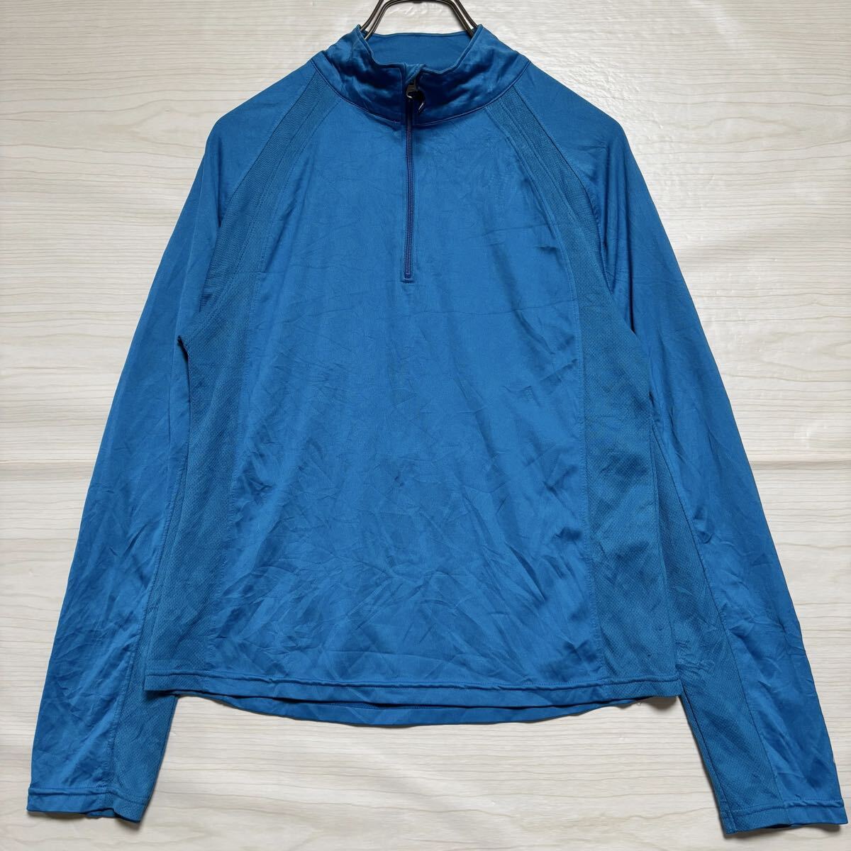 - champion チャンピオン ハーフジップ 長袖カットソー スポーツウェア 速乾性 サイズM ブルー 青 ポリエステル レディース トップス(36)