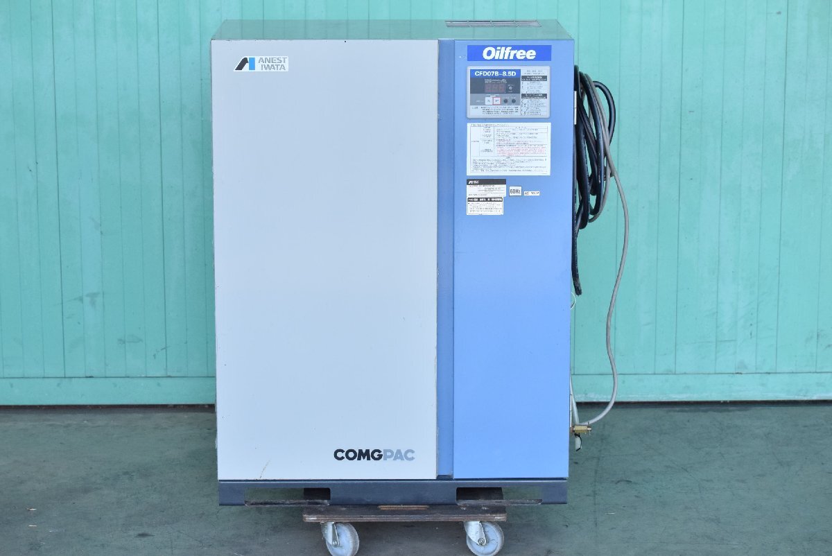 - 【オイルフリー】コンプレッサー アネスト岩田 CFD07B-8.5D 0.75kW/1馬力 100V 60Hz 動画あり 点検、清掃済み!!三重県