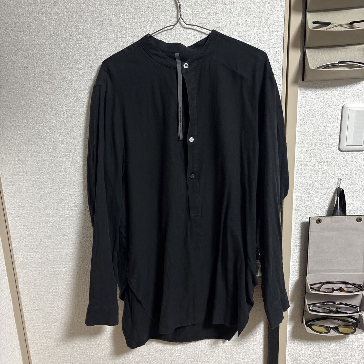 - kazuyuki KUMAGAI attachiment コットン ウール ロング丈シャツ ブラック 黒