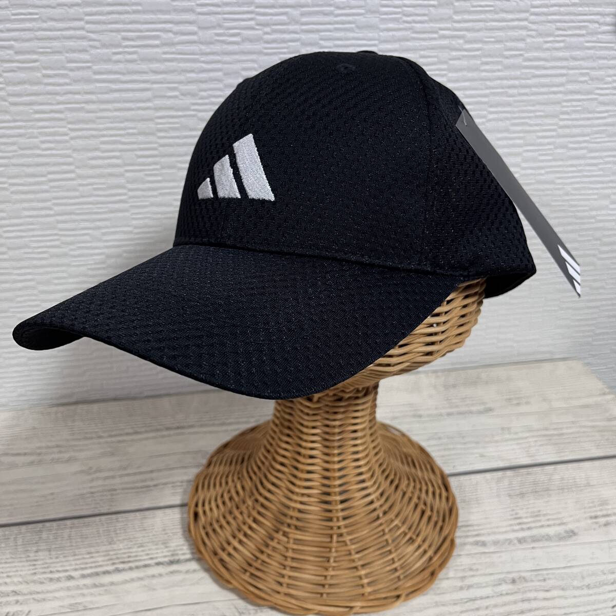 - ★ adidas (アディダス) ★ メッシュキャップ 黒色 頭周:57-60cm ドライ 吸汗速乾 パフォーマンスロゴ スポーツ (タグ付き新品未着用品)