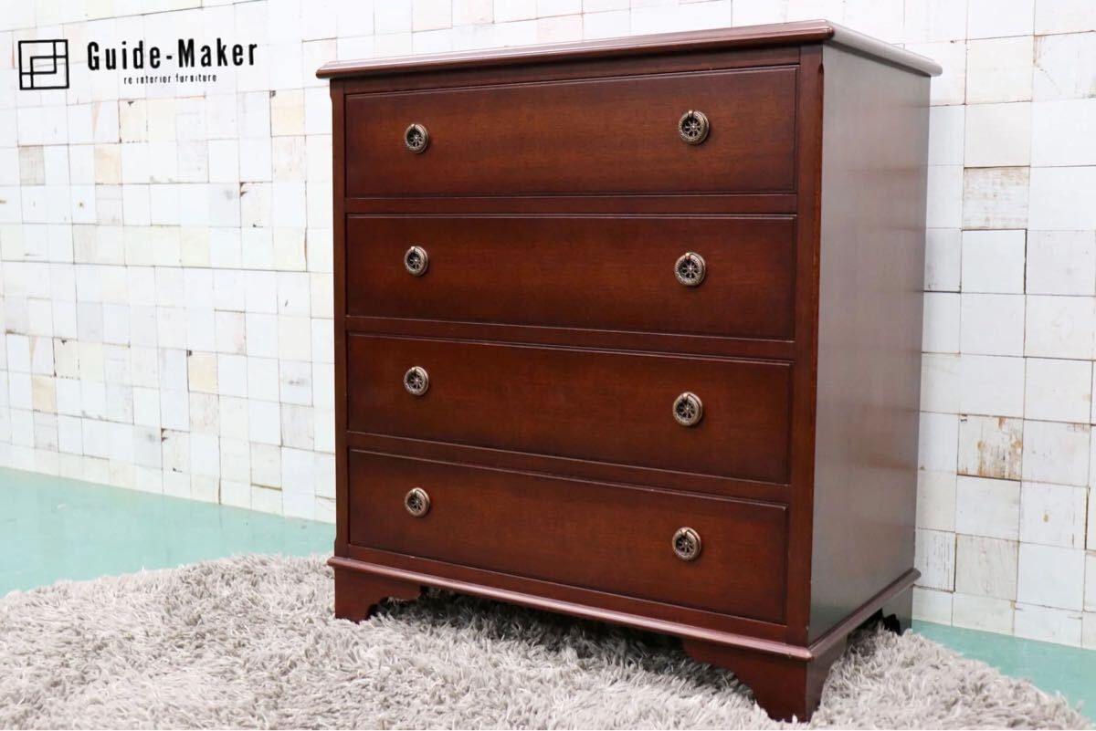 - GMFT330○メープル不二屋 神戸家具 洋家具 4段チェスト 洋服タンス 整理箪笥 マホガニー材 レトロ クラシック ヨーロピアン 定価約27万