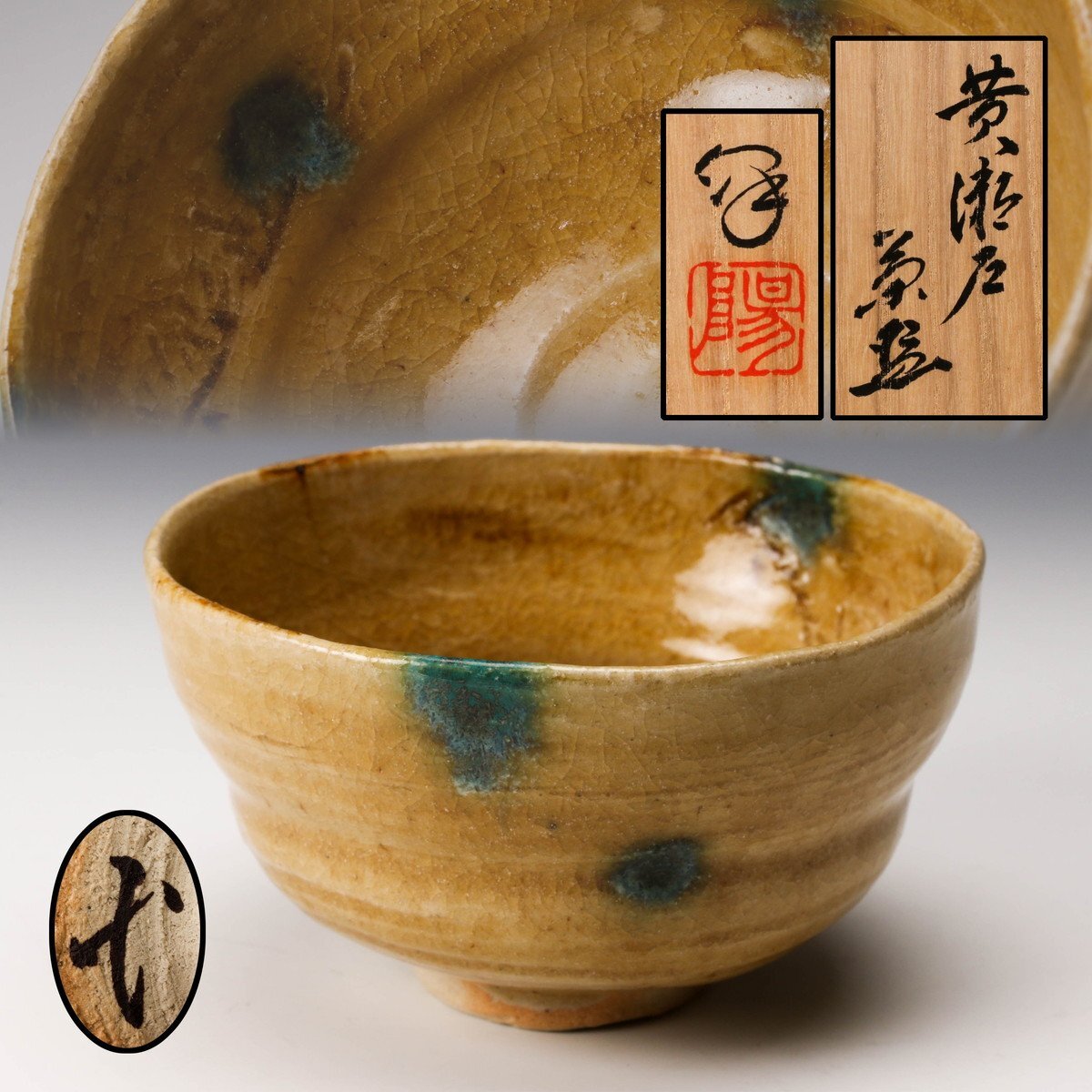 【佳香】水野澤三 黄瀬戸茶碗 共箱 共布 栞 茶道具 本物保証拍卖