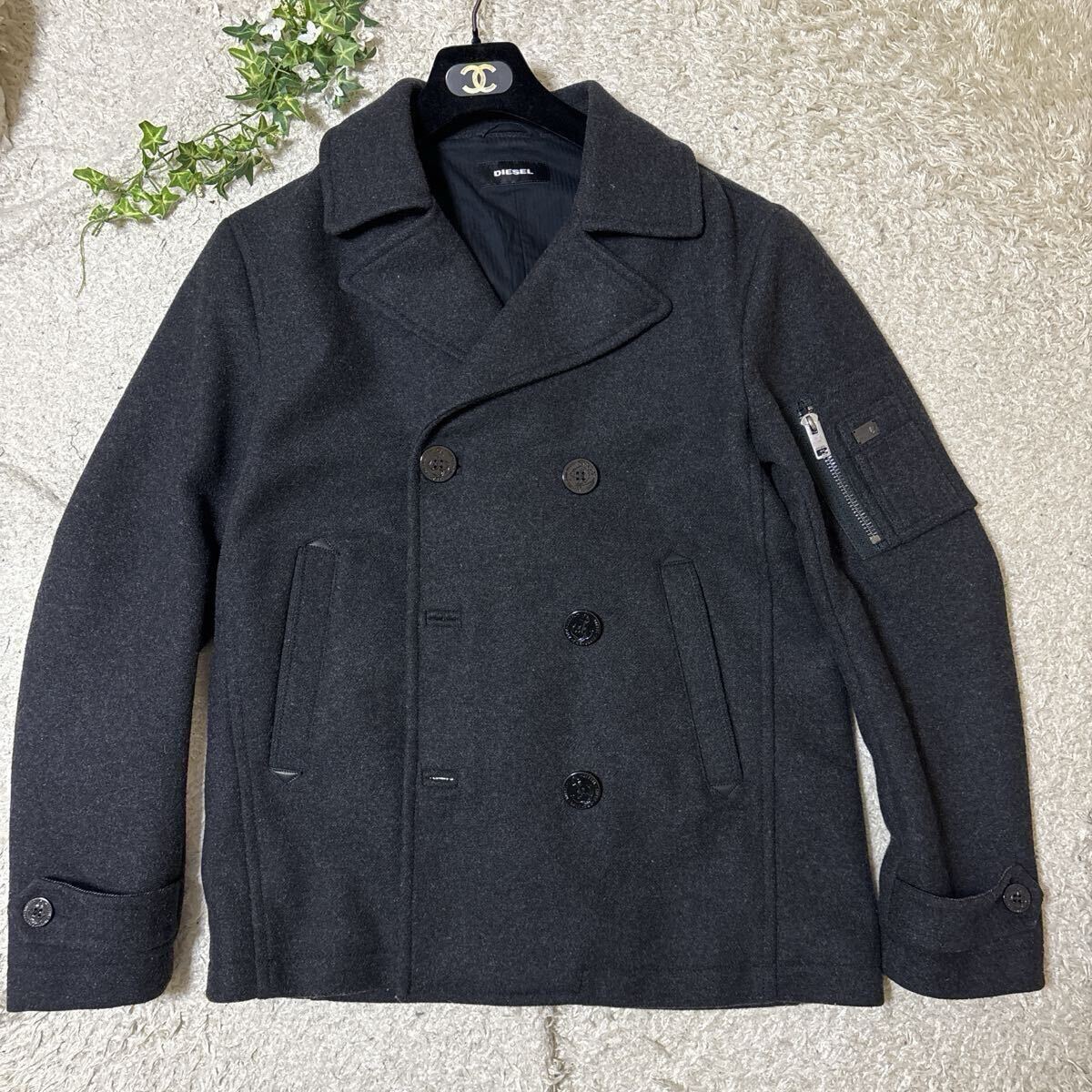 > 極美品 定価7万円●DIESEL ディーゼル Pコート ミリタリー ジャケット メルトン ウール メンズ Lサイズ 正規品 チャコールグレー 冬物