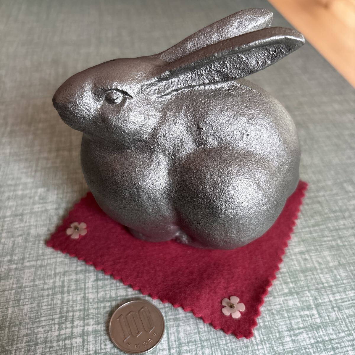 - 【彫刻 置物 オブジェ 金属製 うさぎ】昭和レトロ 当時物 ヴィンテージ 卯 兎 ウサギ 干支 縁起物 インテリア