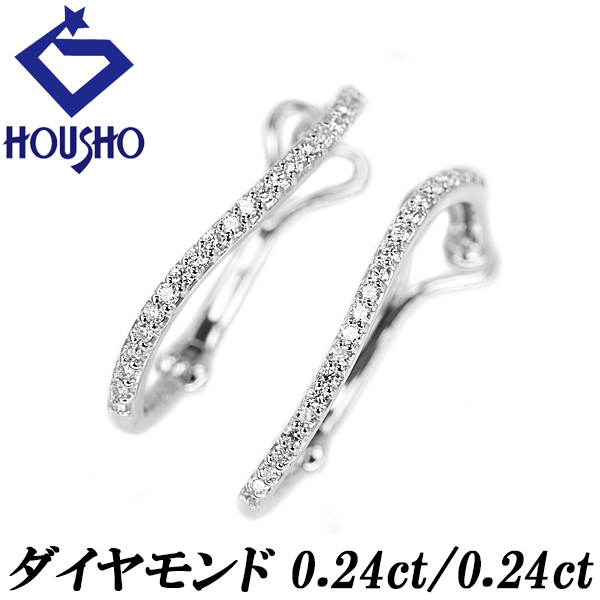 - ダイヤモンド イヤリング K18ホワイトゴールド ピアリング フープ ウェーブ 送料無料 中古 宝正 902967