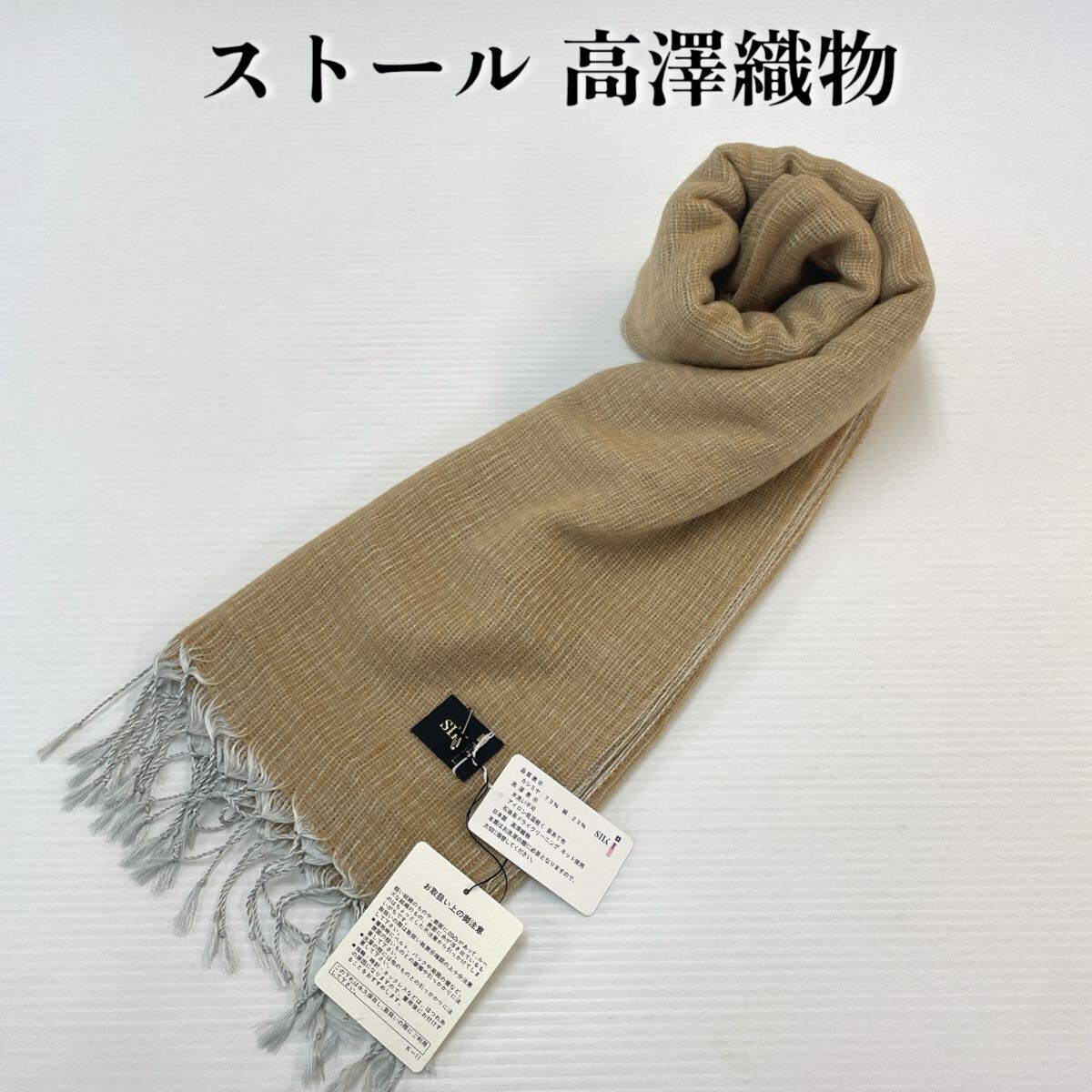 > 【ストール 高澤織物】未使用 カシミヤ 絹 秋冬 スカーフ ショール 茶色 ブラウン 肩掛け 膝かけ 国産 日本製 防寒 #0263-745Z9