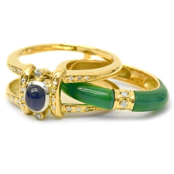 - as Time 石川 暢子 K18 サファイア カルセドニー ダイヤモンド 2連 リング 0.63ct 8.4g ソーティング付 YG イエロー ゴールド 指輪 5061827