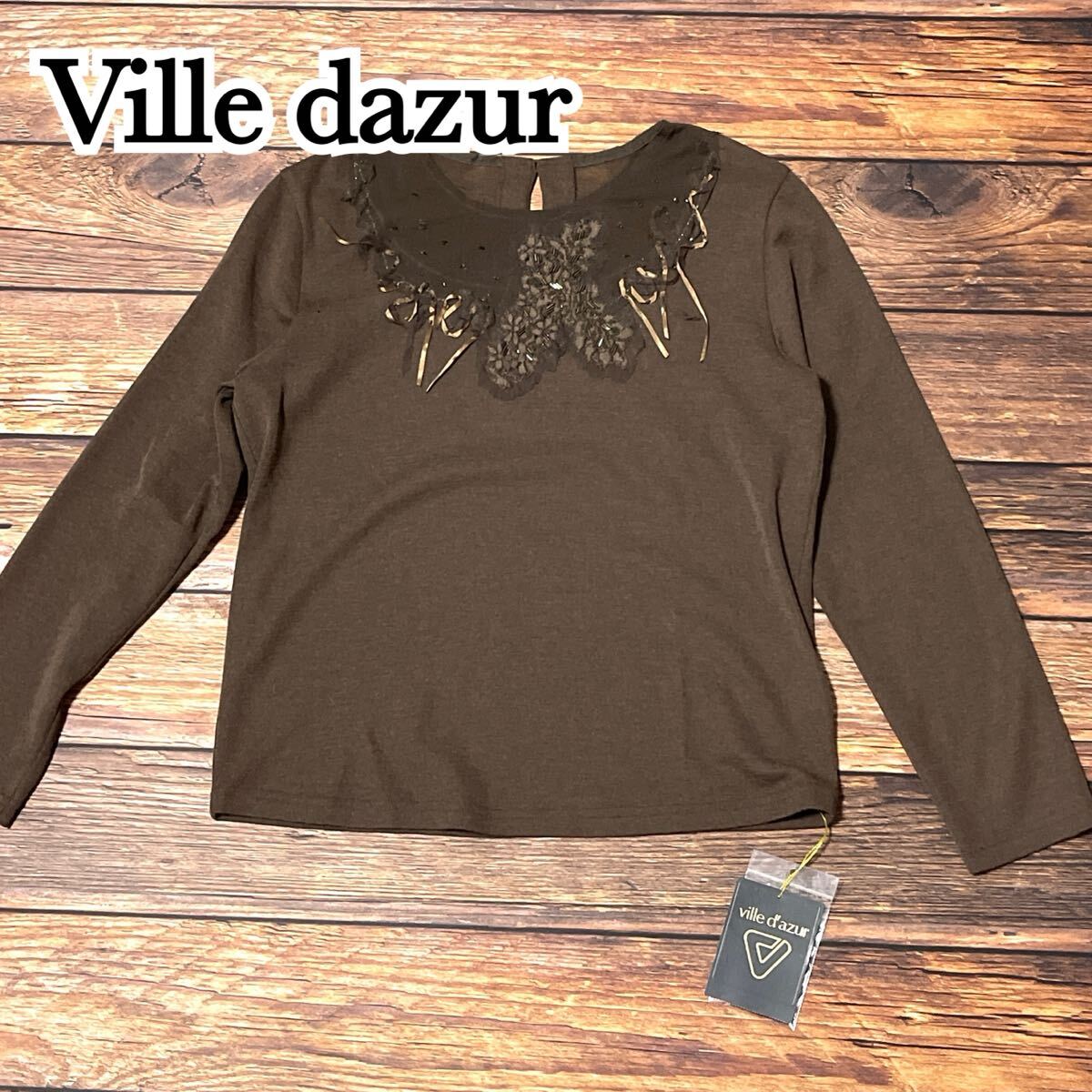> 新品 未使用 Ville dazur ビルダジュール シャツ カットソー レディース トップス 長袖 プルオーバー ラウンドネック ブラウン サイズ42 M
