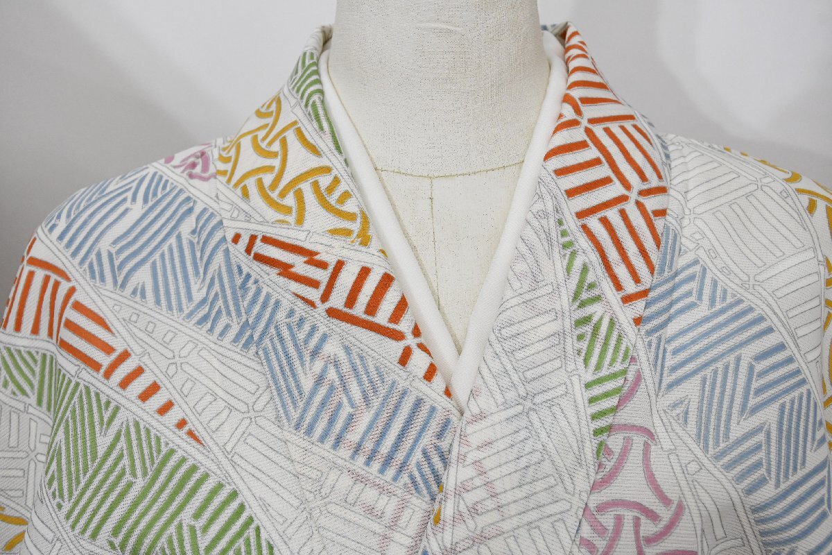 > 小紋 着物 紗 夏着物 更紗幾何学模様 身丈152.5cm 裄丈64cm ★ kb-7302 桜庭呉服店