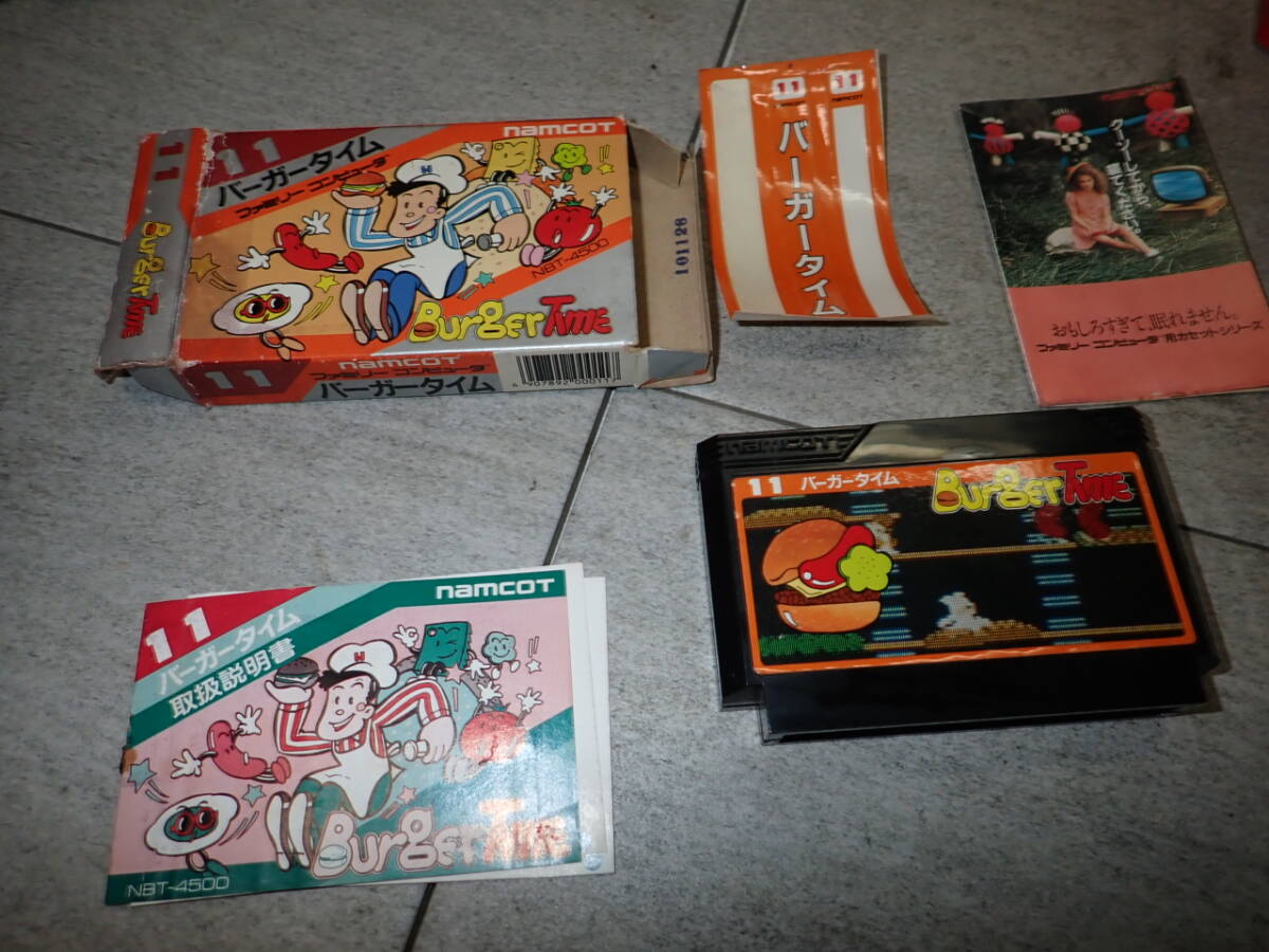 バーガータイム FC 箱 説明書付き ファミコン ステッカー チラシ G2/F3278