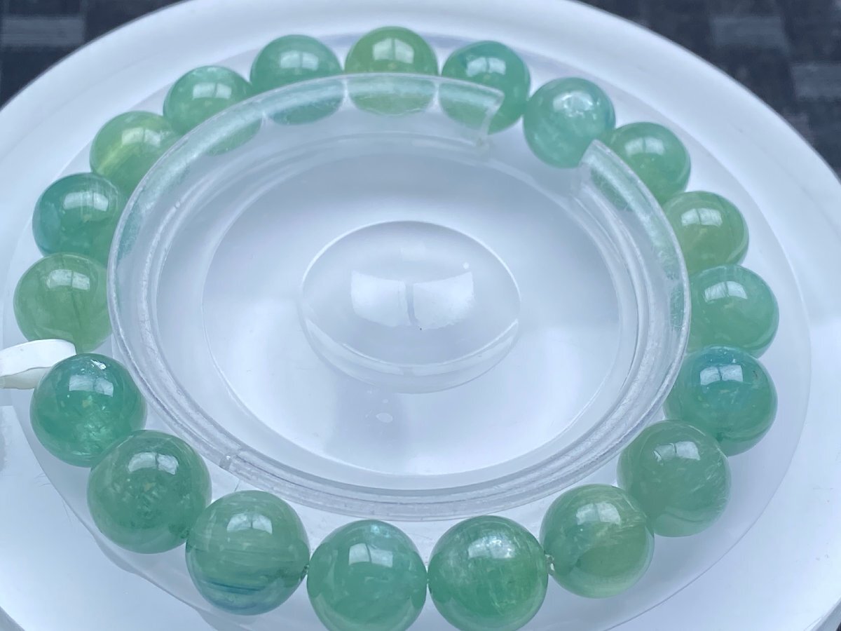 > 即決 0623a547 天然無着色!!★【45Aグリーン猫目カイヤナイト】★ブレス 10.1-10.8mm(新品)