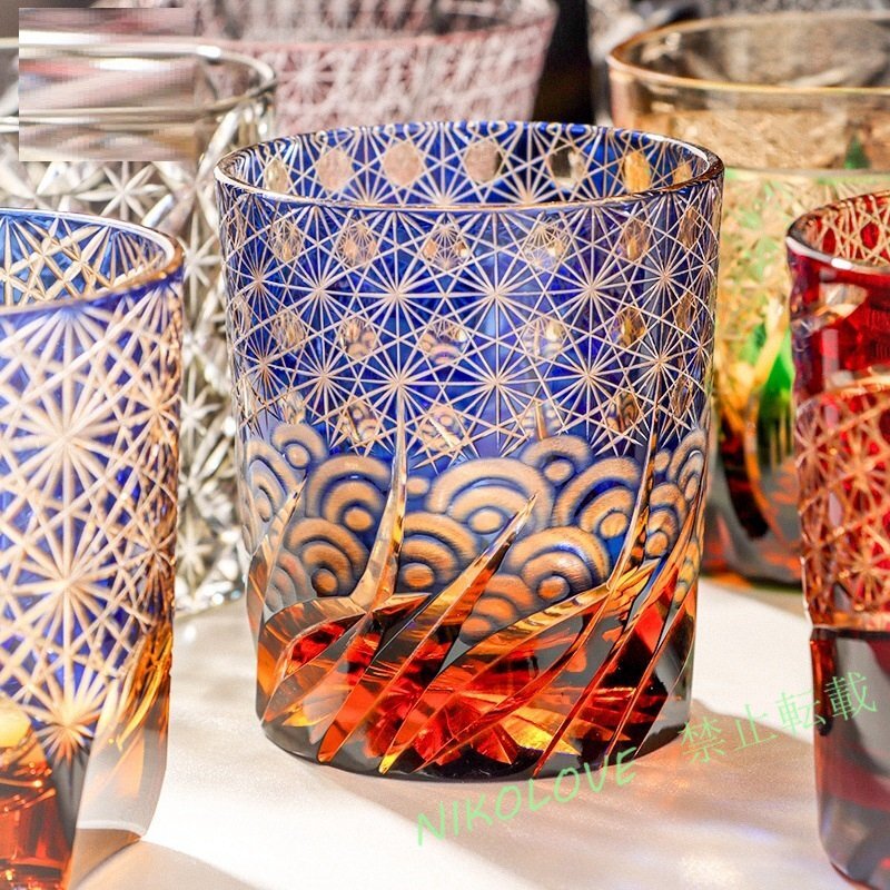 > ☆新品高級グラス 切子 波が星に注ぐ 冷酒杯 手作りワインセット ロックグラス ビールウイスキーグラス 250ml
