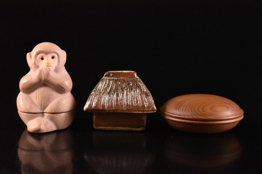 - 【雲】某コレクター買取品 木製 陶器製 香合 まとめて 古美術品(茶道具) F8624