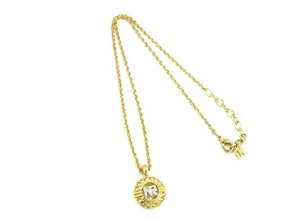 > ■美品■ NINA RICCI ニナリッチ ラインストーン ロゴモチーフ ネックレス ペンダント アクセサリー レディース ゴールド系 DF7674