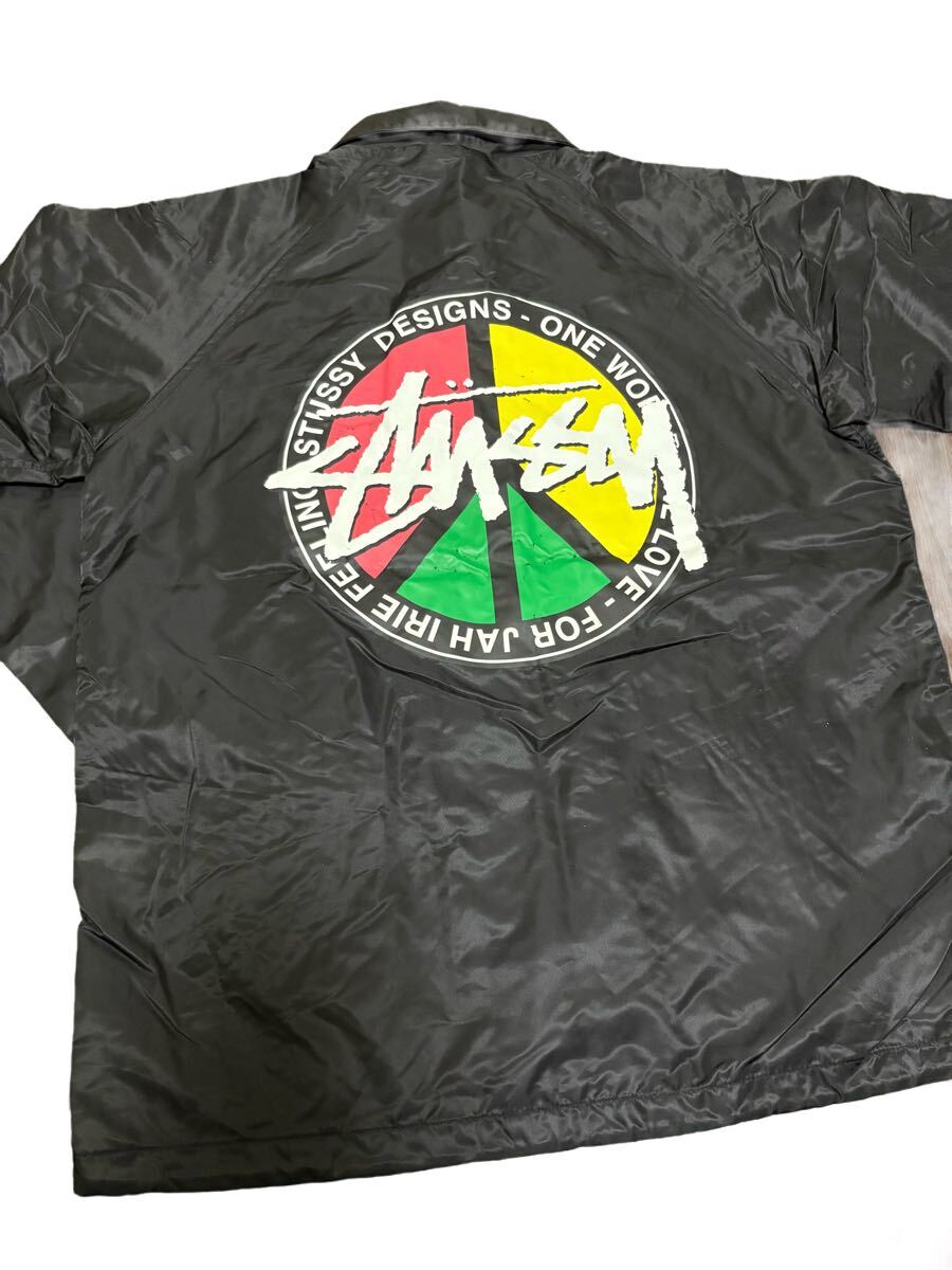 - 90〜00's STUSSYラスタ柄ナイロンコーチジャケット 黒 L ステューシー レゲエ OLD オールド デッドストック