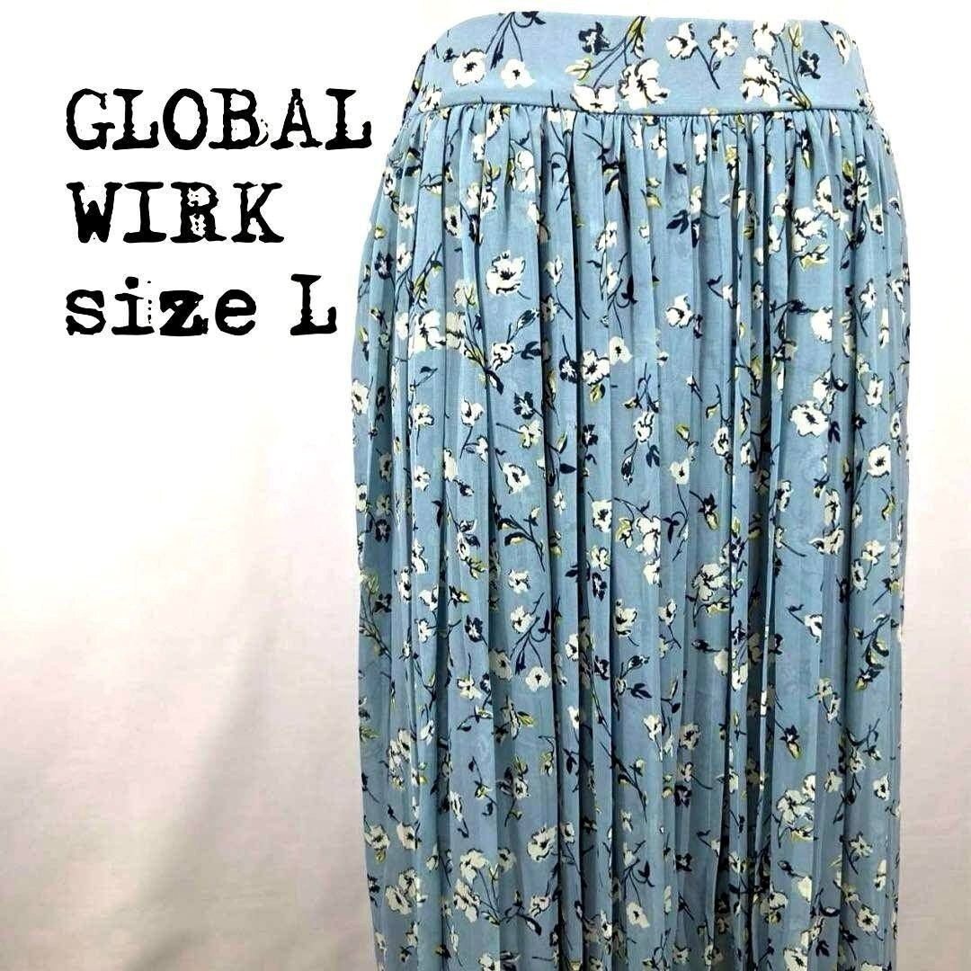- GLOBAL WORK グローバルワーク 花柄プリーツスカート Lサイズ ブルー