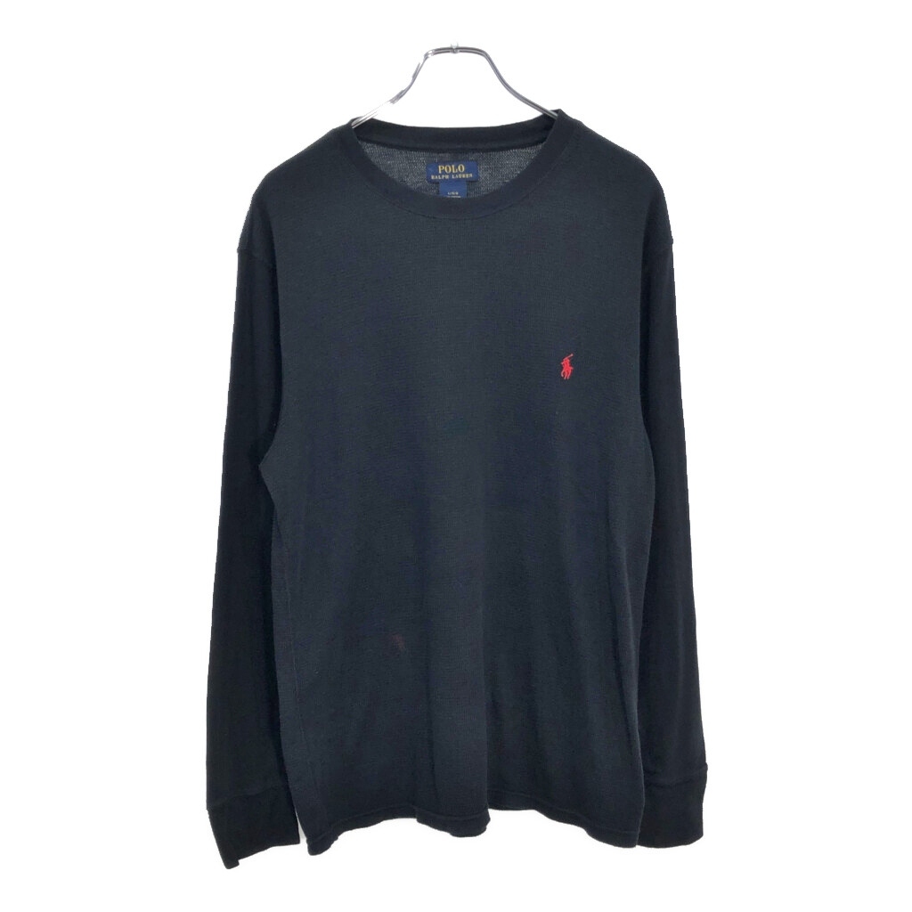 > Polo by Ralph Lauren ポロ ラルフローレン ワンポイントロゴ 長袖サーマルTシャツ ブラック(メンズ L)中古 古着 V6422