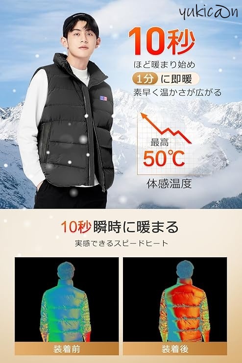 > 電熱ベスト 加熱ベスト ヒートジャケット 2XL ブラック 40800mAh 17箇所発熱 前後独立スイッチ USB給電 速暖 丸洗い 省エネ 節電