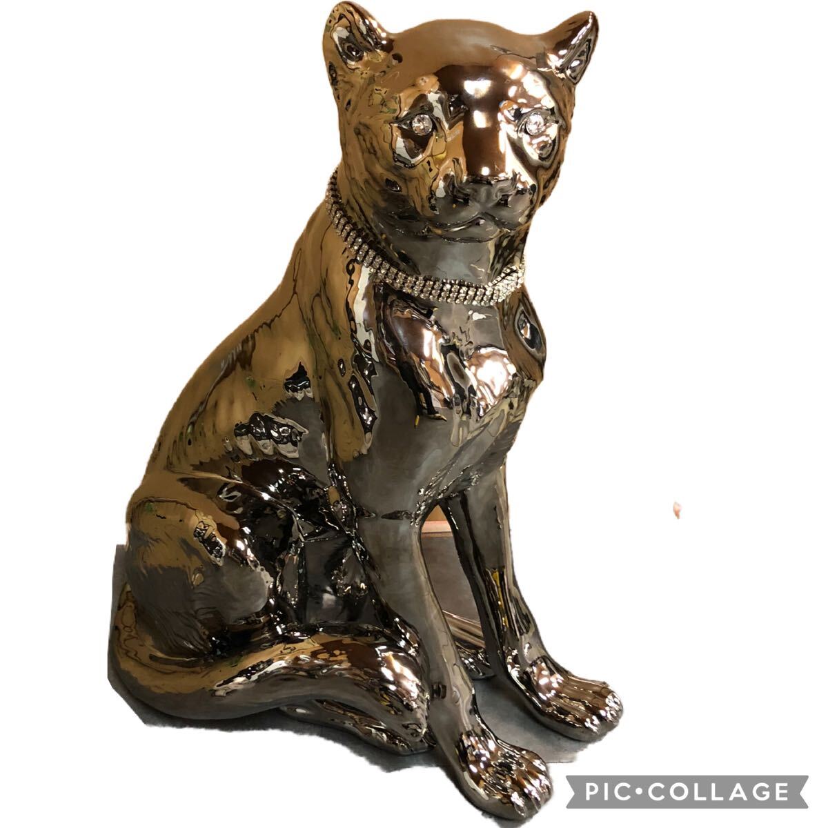 - &AHURA アフラ レオパード ヒョウ 豹 インテリア 置物 オブジェ 風水 縁起物 シルバー プラチナ イタリア製※一部剥がれ有 アンティーク