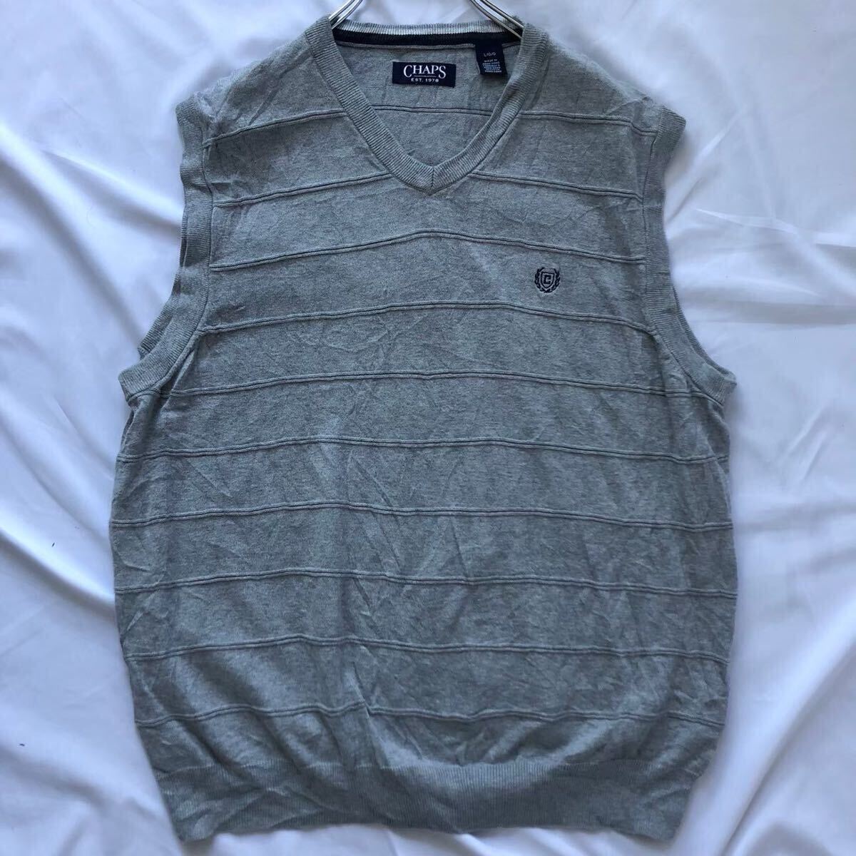 - CHAPS ニットベスト グレー L 刺繍ロゴ 90s 香港製