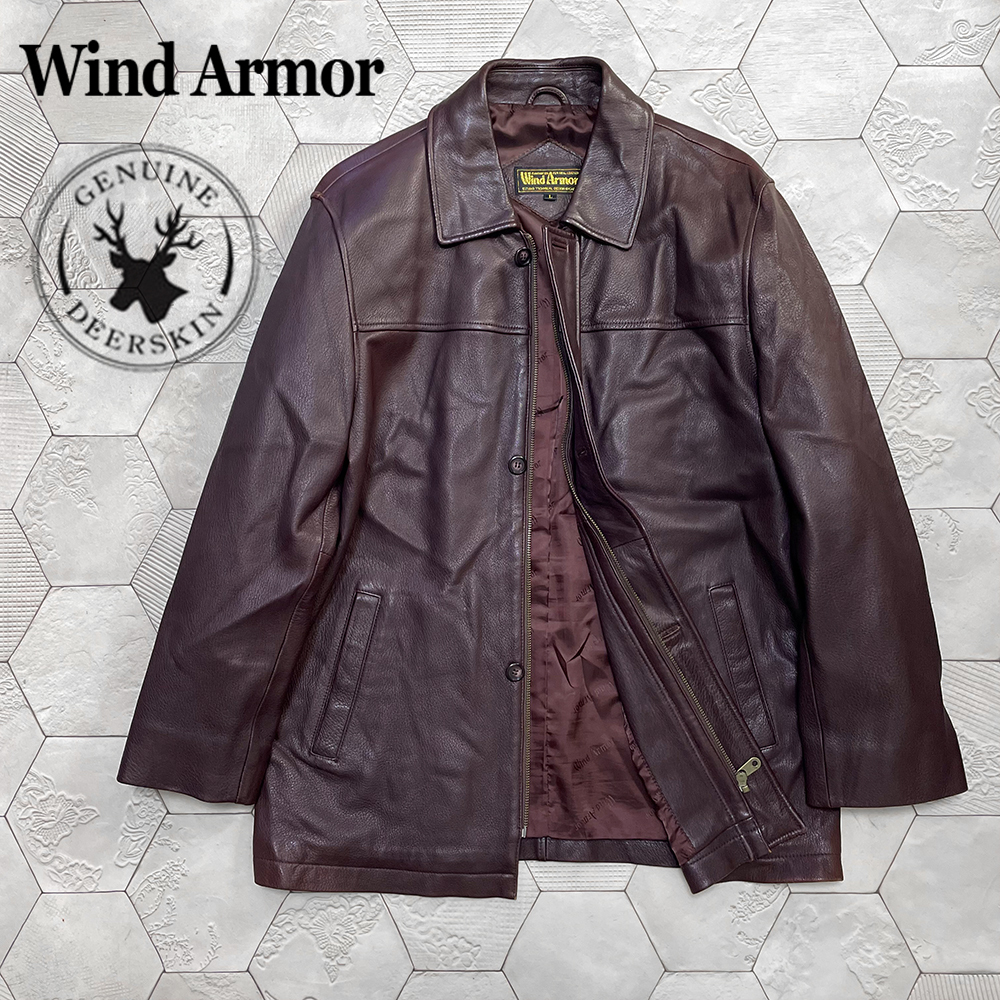 > 定価15万円 ニチワ社 ウィンドアーマー【Wind Armor】ニュージーランド産 鹿革 ディアスキン 最高級レザーコート L 赤茶