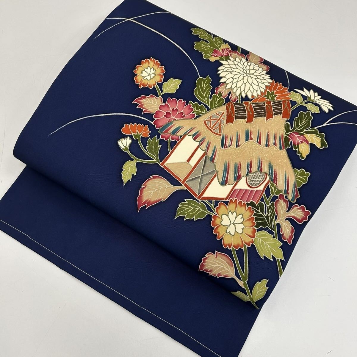 > 名古屋帯 塩瀬 上品な草花染め 九寸 着物 正絹 W-5396
