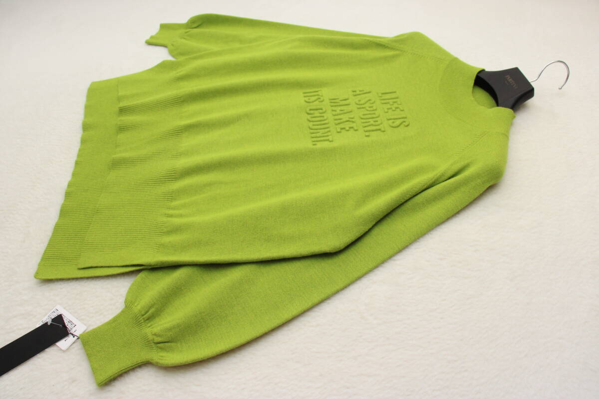 - 5758 新品 SOEN タグ付 エンボス加工英字デザインニットプル 42表記 定価¥26,400- ライム