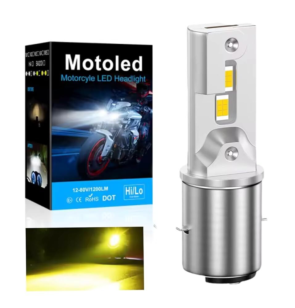 - BA20D H4BS LED ヘッドライト バイク 黄色 イエロー 12V バルブ バイク用 Hi/Lo切替 ファンレス IP68 防水 直流車用