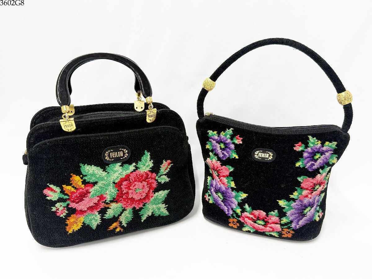 - FEILER フェイラー シュニール織 花柄 プラスチックハンドル パイル生地 ハンドバッグ レディース 鞄 バッグ 2点 まとめ 3602G8-1