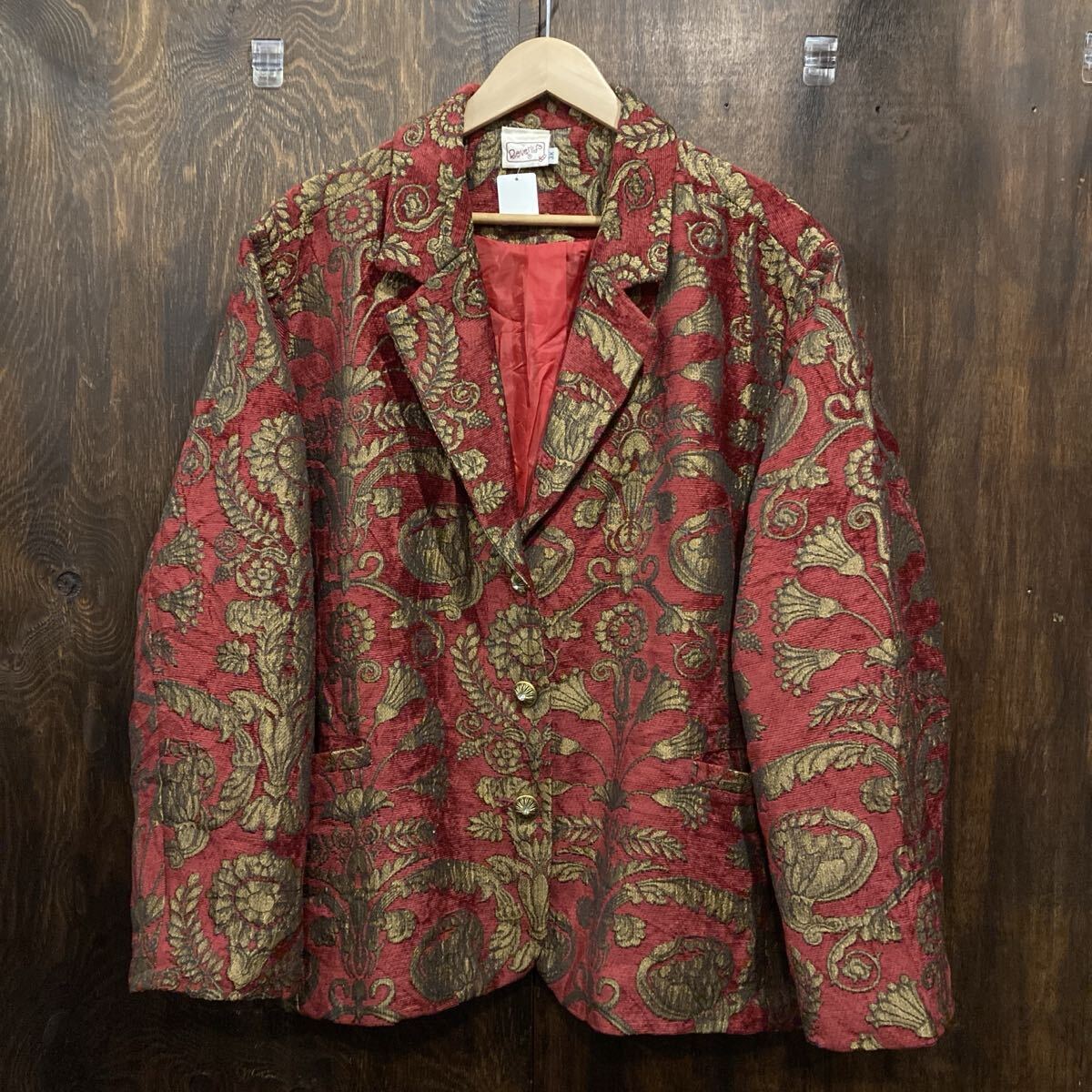 > Beverly's ボタニカル柄 テーラードジャケット ゴブラン織り 赤 総柄 スーツジャケット ゴブランジャケット