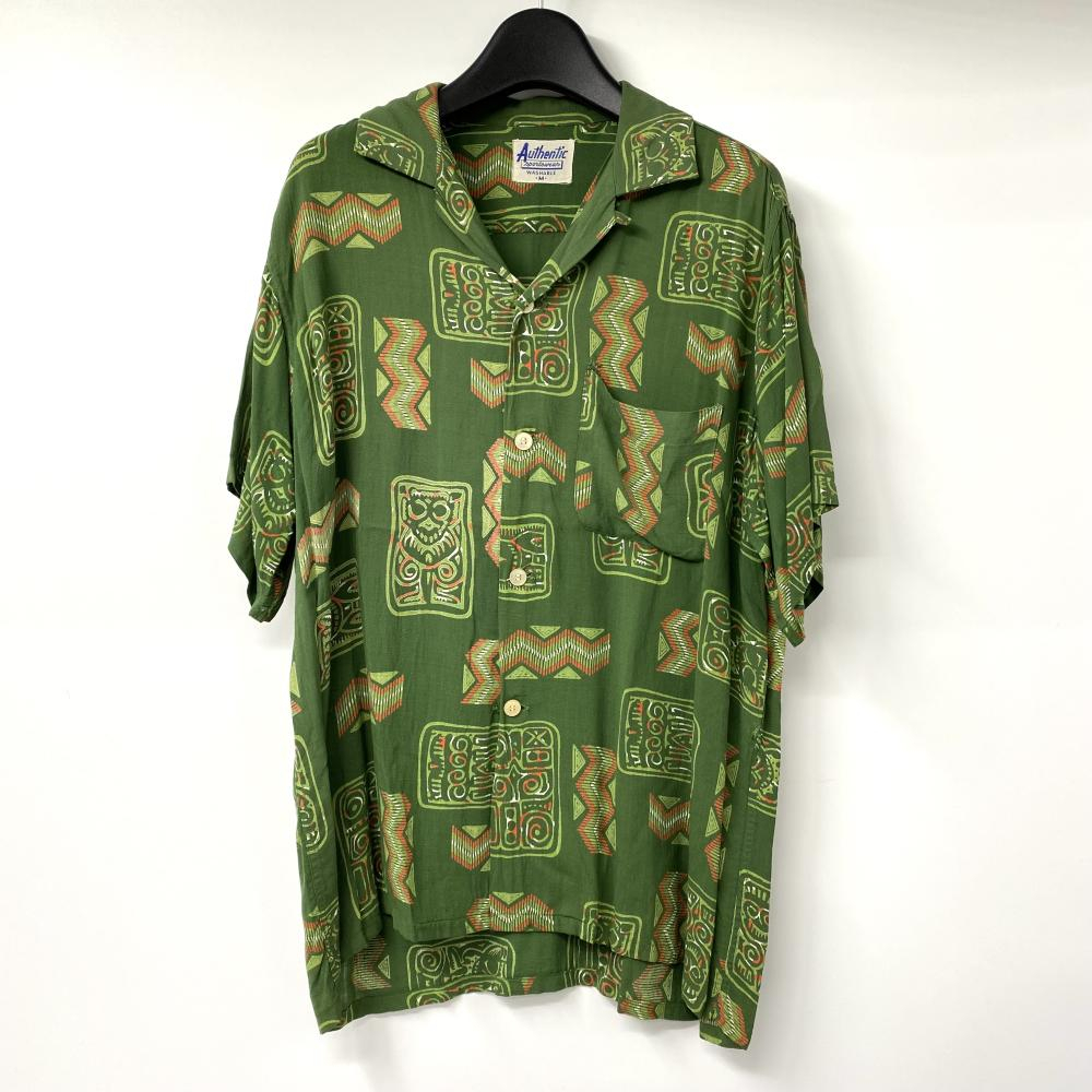 > 【中古】50s Authentic Sportwear オープンカラーシャツ サイズM グリーン ポケット付け根破れ 第1ボタン部分リペア有[240017701909]