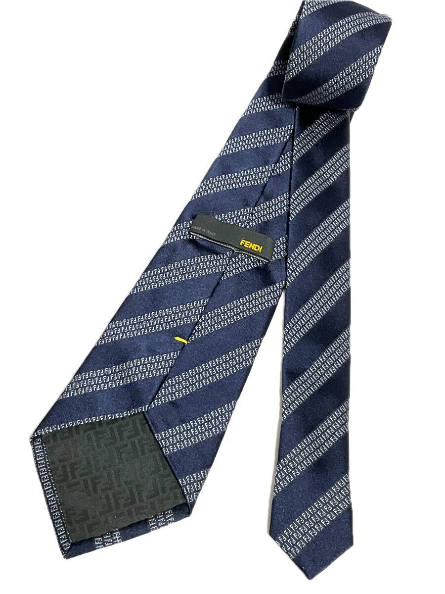 - 美品 FENDI フェンディ ネクタイ ネイビー×ブルー系 ズッカ FF ストライプ レジメンタル 柄 ハイブランドネクタイ 送料185円(追跡付)〜