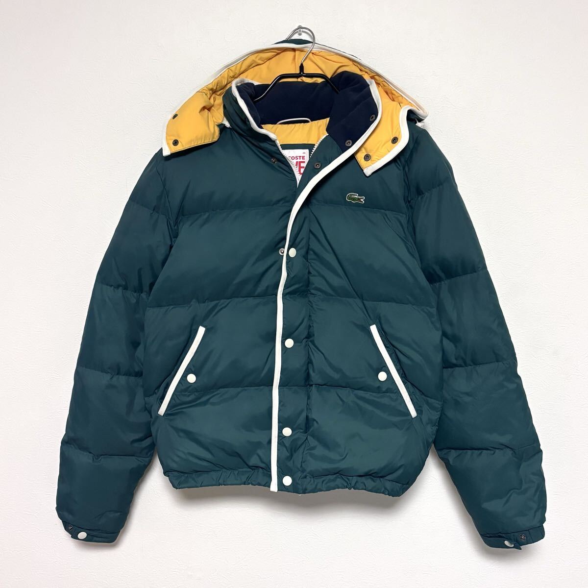 > 【美品】LACOSTE LIVE ダウンジャケット 46 ラコステ ライブ フード取外可 グリーン 緑 イエロー メンズ L相当 アウター ジャンパー 冬服