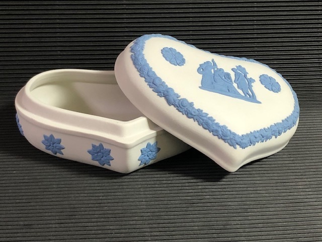 - ◎ウェッジウッド 青/白 逆転ジャスパー ハート形蓋物◎希少色z46
