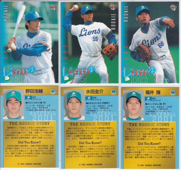 > ●2001BBM[野田 浩輔,水田 圭介,福井 強,三井 浩二] ルーキーカード:西武
