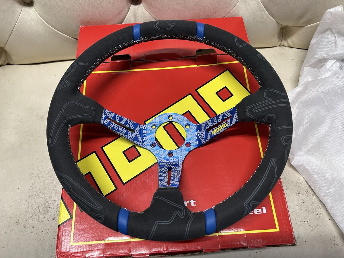 > MOMO ステアリング 350ミリφ35 ブルー ホーンボタン付き