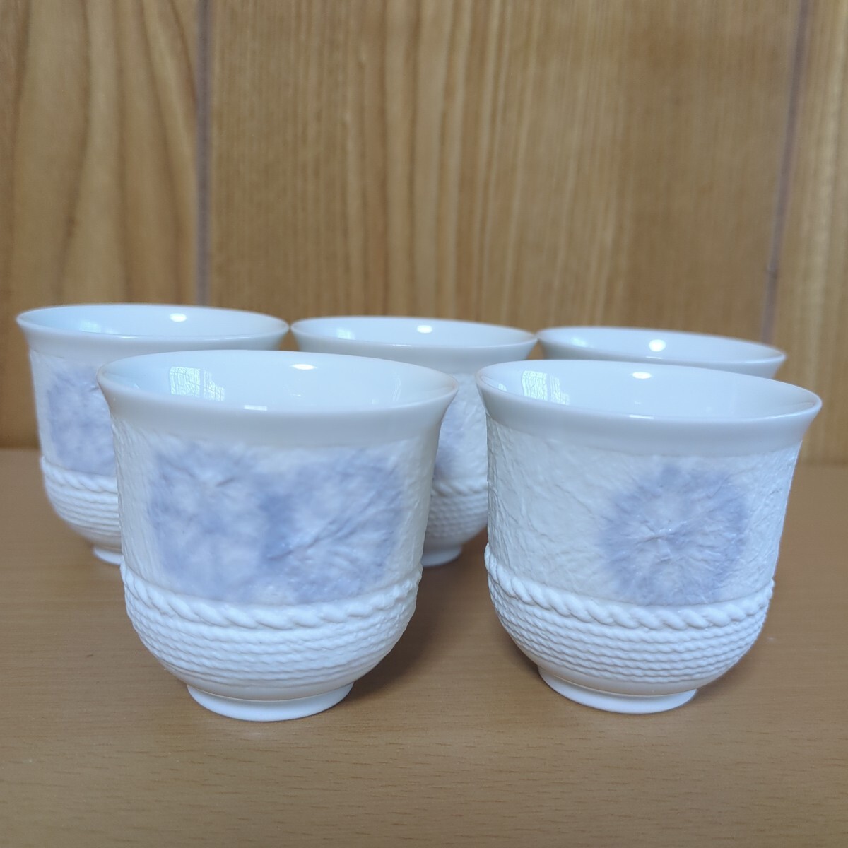 - 有田焼 百仙窯 湯呑み 和紙絞り地紋 5客セット