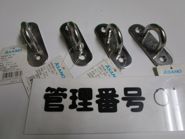 - パッドアイ ステンレス製 サイズ 8ミリ メーカー 浅野金属工業 品番AK3007 使用荷重40キロ 4ケで¥2200