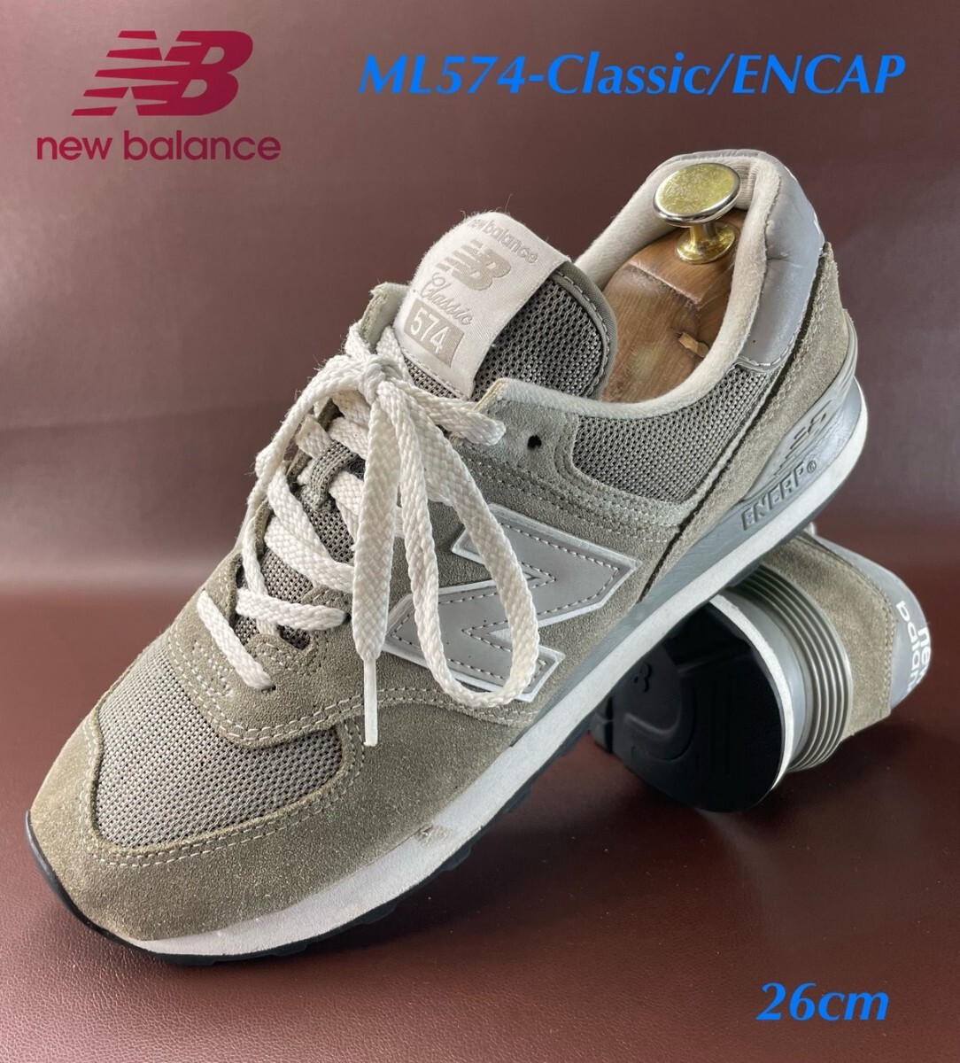 > 名機降臨!復刻旧クラッシックシリーズ!名作ファストカラー!ニューバランス【ML574-Classic/ENCAP 】スニーカー!灰×銀 26cm/US8