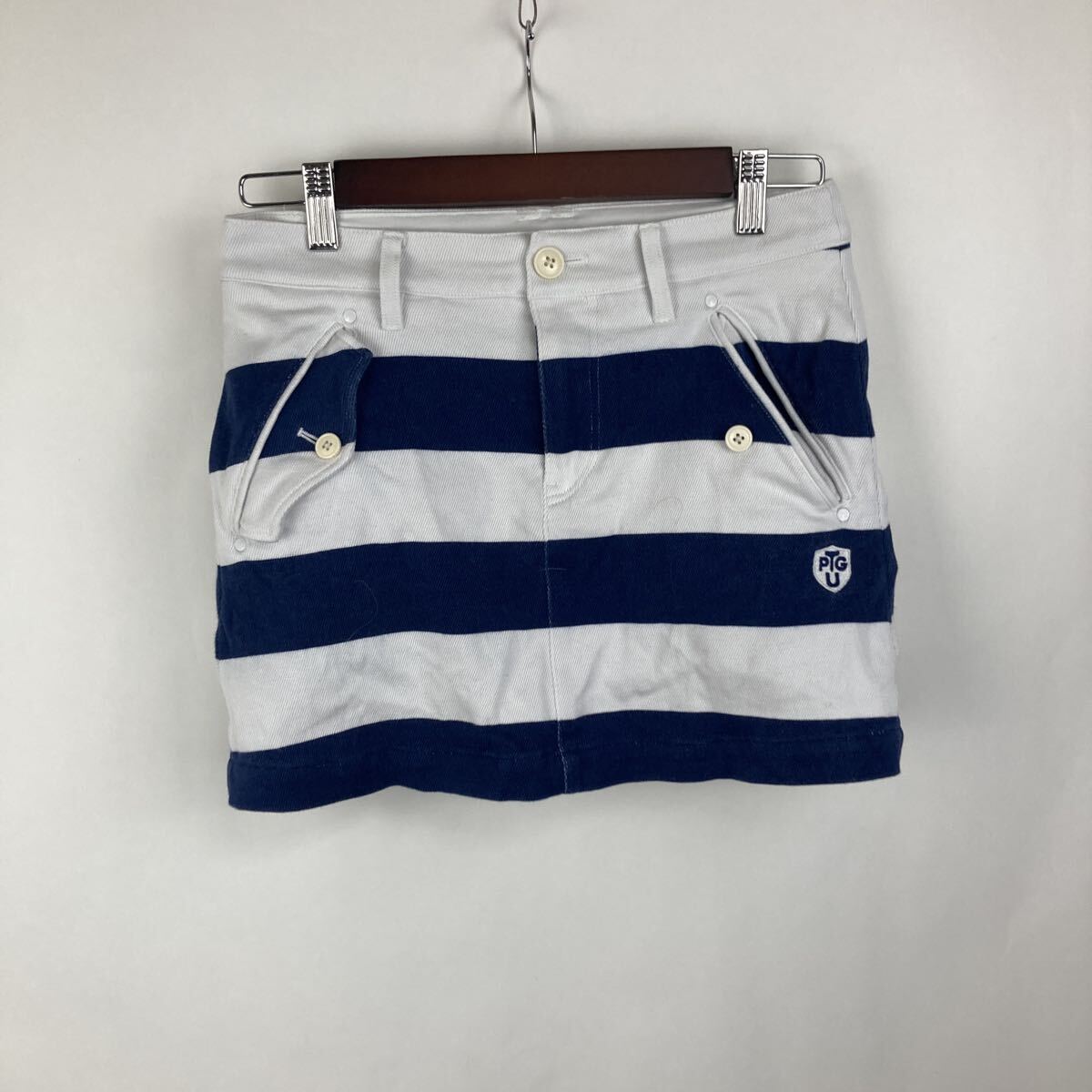 - PEARLY GATES パーリーゲイツ スカート ゴルフウェア ボーダー ボーダー柄 ネイビー 白 ワンポイント 刺繍 ロゴ刺繍 古着卸 激安古着