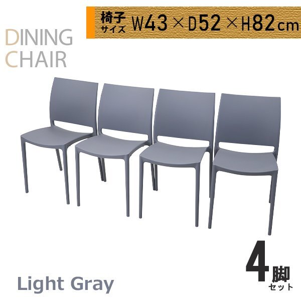 > 送料無料 プラスチックチェア ダイニングチェア ガーデンチェアー 4脚セット UVカット ライトグレー 耐荷重約180kg 軽量 スタッキング